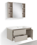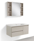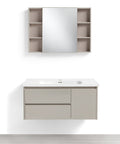 Mobile Bagno Sospeso 100 cm GENZIANA in alluminio, con 2 cassetti e 1 anta, specchio contenitore a 1 anta, lavabo in ceramica