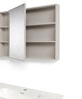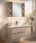 Il mobile da bagno sospeso Genziana è una soluzione dal design moderno ed essenziale, ideale per ambienti contemporanei che richiedono funzionalità e stile. Il mobile bagno è realizzato in alluminio e dotato di due cassetti e un’anta, perfette per organizzare prodotti e accessori mantenendo l’ambiente ordinato. Le linee pulite donano un tocco di eleganza e luminosità allo spazio. Il mobile base misura L 101 x P 48 x H 47,5 cm ed è completo di lavabo in ceramica, resistente e facile da pulire, perfettamente integrato nel design complessivo. La composizione è completata da una specchiera sospesa a un’anta dalle dimensioni L 90 x P 11 x H 65 cm, pratica e capiente, ideale per riporre prodotti da toilette e accessori quotidiani, mantenendo una superficie visivamente pulita. Il set è disponibile in un’unica finitura Cipria. Grazie alla struttura sospesa, il mobile facilita la pulizia del pavimento e contribuisce a creare un effetto visivo leggero e ordinato. Una proposta elegante e funzionale, perfetta per arredare il bagno con stile e praticità.