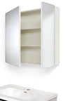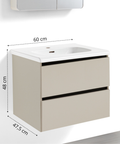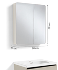 • PEONIA 60: Composta da un mobile sospeso a due cassetti dalle dimensioni L 61 x P 47,5 x H 48 cm e una specchiera a due ante dalle dimensioni L 60 x P 11 x H 68 cm;