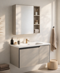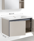 Il mobile da bagno sospeso Camelia è una soluzione salvaspazio dal design moderno ed essenziale, ideale per ambienti contemporanei che richiedono funzionalità e stile. Il mobile bagno è realizzato in alluminio e dotato di due ante, perfette per organizzare prodotti e accessori mantenendo l’ambiente ordinato. Le linee pulite donano un tocco di eleganza e luminosità allo spazio. Il mobile base misura L 80,5 x P 47 x H 47 cm ed è completo di lavabo in ceramica, resistente e facile da pulire, perfettamente integrato nel design complessivo. La composizione è completata da una specchiera sospesa a un’anta dalle dimensioni L 75 x P 11 x H 65 cm, pratica e capiente, ideale per riporre prodotti da toilette e accessori quotidiani, mantenendo una superficie visivamente pulita. Il set è disponibile in un’unica finitura Beige. Grazie alla struttura sospesa, il mobile facilita la pulizia del pavimento e contribuisce a creare un effetto visivo leggero e ordinato. Una proposta elegante e funzionale, perfetta per arredare il bagno con stile e praticità.