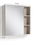 • Dimensioni specchiera: L 75 x P 11 x H 65 cm
