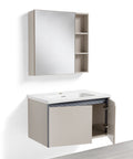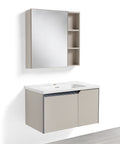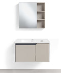 Mobile Bagno Sospeso 80 cm CAMELIA in alluminio, con 2 ante, specchio contenitore a 1 anta e lavabo in ceramica