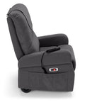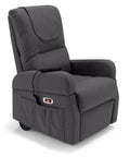 La poltrona elettrica alzapersona DUBAI è pensata appositamente per migliorare la qualità di vita di soggetti anziani e/o con disabilità fisiche che necessitano di indipendenza per lo spostamento da un ambiente all’altro. Questo grazie ad una serie di funzionalità e di caratteristiche appositamente studiate. La poltrona DUBAI ha innanzitutto 4 motori: 2 motori per lo spostamento a destra, a sinistra, avanti e indietro, 1 motore che consente il movimento dello schienale, 1 motore che consente il movimento di pediera e il meccanismo alzapersona, permettendo di raggiungere una posizione ottimale per la circolazione sanguigna ed una condizione di totale relax. È inoltre dotata di 4 ruote, di cui 2 motrici e 2 direzionali. I movimenti vengono gestiti direttamente mediante il telecomando con funzione Drive System che permette di “guidare” facilmente la vostra poltrona stando comodamente seduti e senza l’aiuto di una seconda persona. La poltrona DUBAI, grazie al sistema alzapersona, ti garantisce un sostegno completo nella fase di sollevamento, permettendoti di alzarti in modo sicuro e senza sforzo. I braccioli retrattili consentono di passare in piena autonomia e con la massima felicità dalla poltrona al letto e viceversa o ancora di avvicinarsi al tavolo. La funzionalità della poltrona DUBAI è garantita dalla presenza di un poggiatesta removibile mediante cerniera e tasche presenti su ambo i lati per riporre comodamente i vostri oggetti. La batteria al litio con autonomia di 172 minuti è facilmente ricaricabile mediante il trasformatore posto al lato destro ove è situata anche una comoda porta USB che consente di caricare facilmente i dispositivi quali cellulare, computer o tablet. Le diverse componenti saranno già assemblate e pronte all’uso, vi basterà collegare la batteria. Il design moderno e sempre attuale è garantito dal rivestimento in tessuto DIVA lavabile con acqua e sapone neutro, con proprietà idrorepellenti che ne garantiscono resistenza alle infiltrazioni di acqua e macchie. Uno stile essenziale e moderno dove comfort e praticità sono in primo piano.