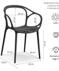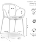 La sedia in polipropilene CHIARA, grazie al design unico e raffinato, è ideale per ogni ambiente interno e esterno: che sia in sala da pranzo, in cucina, nella sala d’attesa del tuo studio professionale, nei bar o nei ristoranti, nella veranda o nel giardino. Studiata per essere ergonomica, presenta uno schienale avvolgente e una seduta ampia che offrono comfort anche lunghe ore di utilizzo. Indistruttibile, grazie alle fibre di vetro con cui è realizzata e al polipropilene di cui è costituita, non c’è alcun rischio che si possa rompere o usurare nel tempo. Leggera e impilabile, si può spostare facilmente e posizionare ovunque. La resistenza ai raggi UV e la completa riciclabilità la rendono unica nel suo genere. Uno stile moderno e sempre attuale, dove comfort e praticità sono in primo piano.