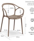 • Dimensioni Sedia: Larghezza Massima 58 CM; Larghezza Anteriore 40 CM; Larghezza Posteriore 41 CM; Profondità 55 CM; Altezza 80,5 CM; Altezza schienale 40 CM; Altezza braccioli 20 CM; Altezza Seduta-Terra 47 CM