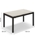 Dimensioni in CM Tavolo chiuso: L 130 x P 80 x H 76